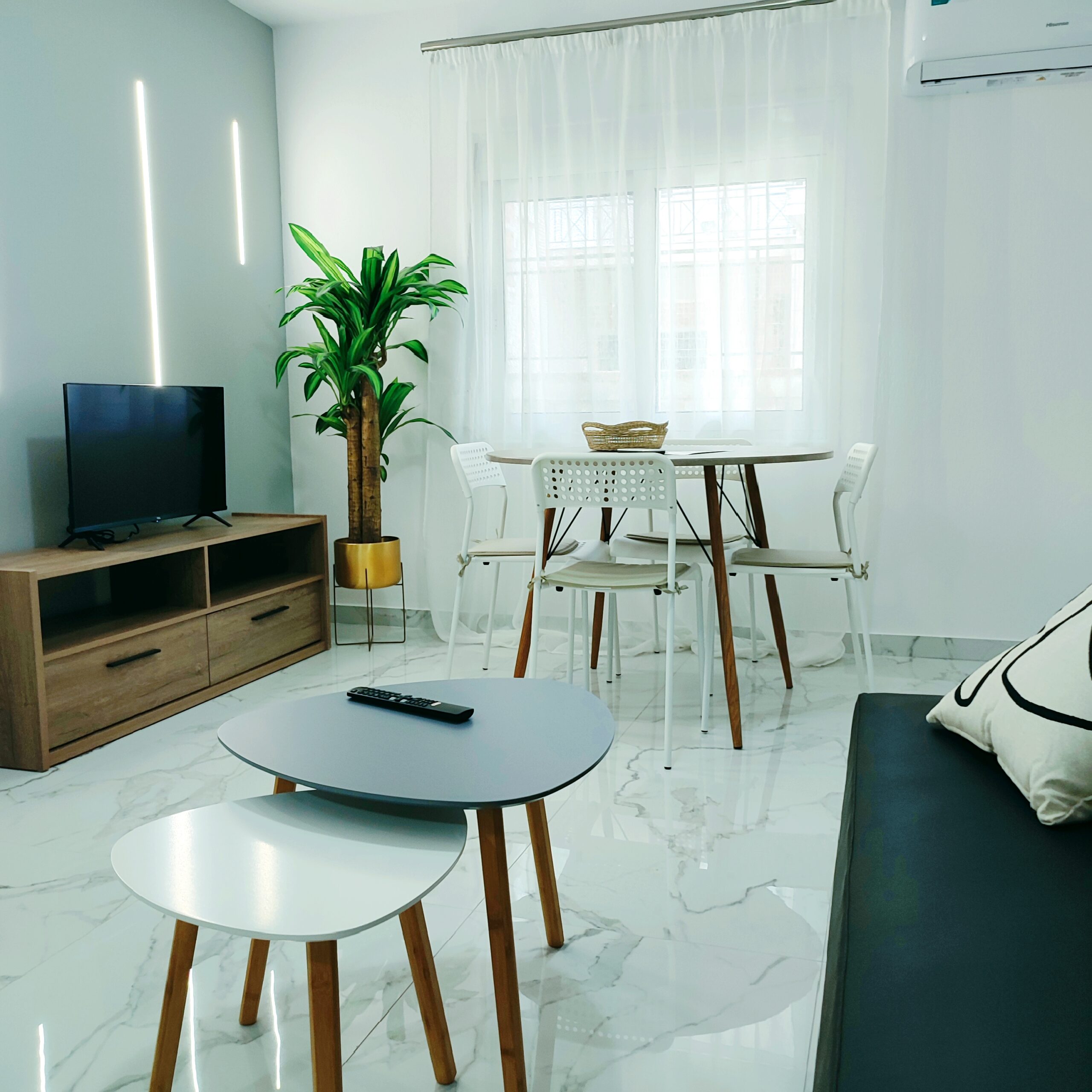 Discover the Unique, a brand new, modern 53m² apartment where contemporary design meets functionality. The apartment features hidden lighting and LED touches, offering a unique atmosphere full of style. It is centrally located and includes a comfortable double bed as well as a sofa bed, ideal for hosting up to two guests.
